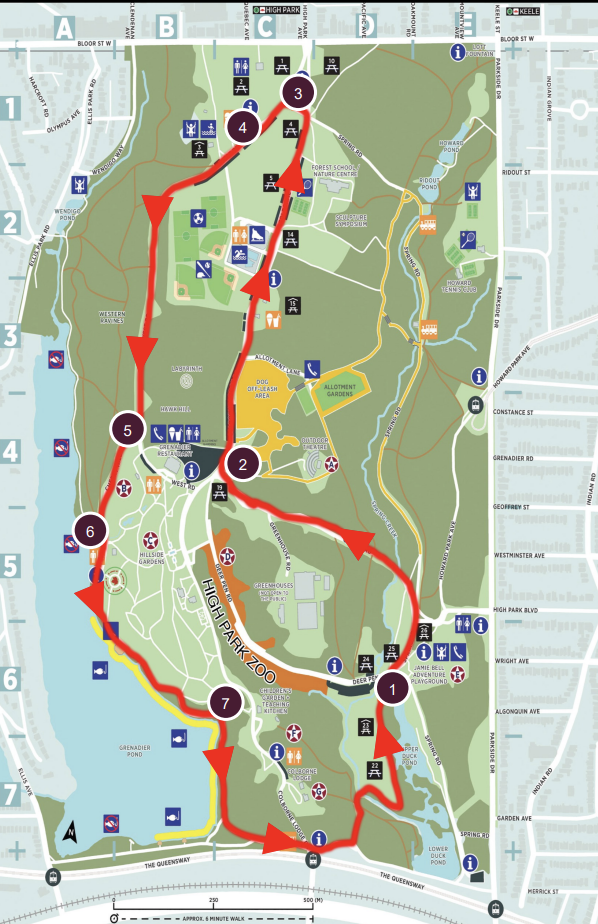 The High Park Trackless Train operates as a seasonal service (weather dependent) consisting of a 30 minute round trip ride around the park, including one stop-over privilege.